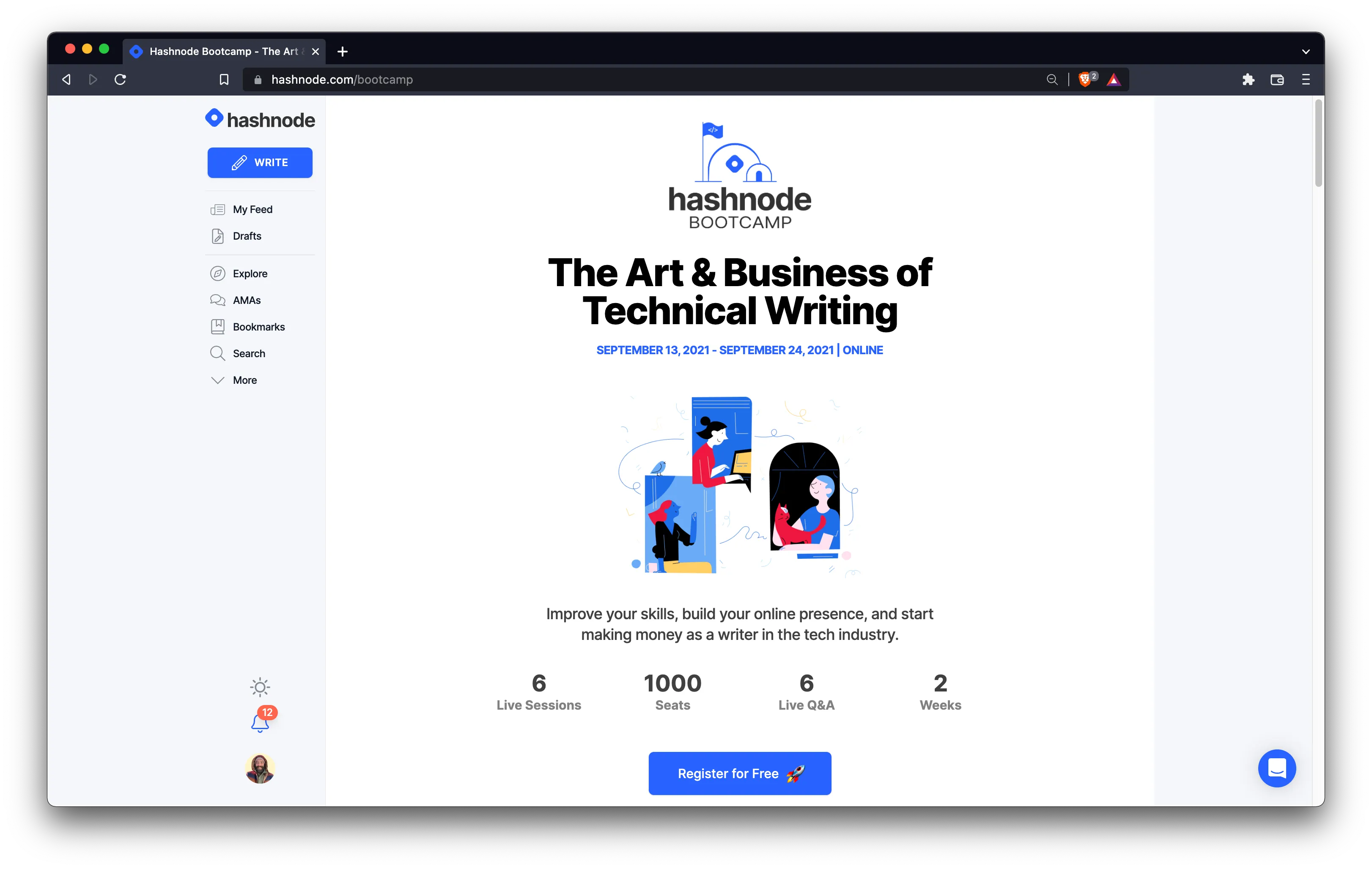 To that end, I organized and hosted a free two-week writing workshop series called The Art and Business of Technical Writing, featuring top content creators in the tech industry. I wrote all marketing materials for the event, including the landing page as well as the automated email marketing sequence that accompanied the series. I also landed three paid sponsorships for the bootcamp from well-respected companies in the industry.