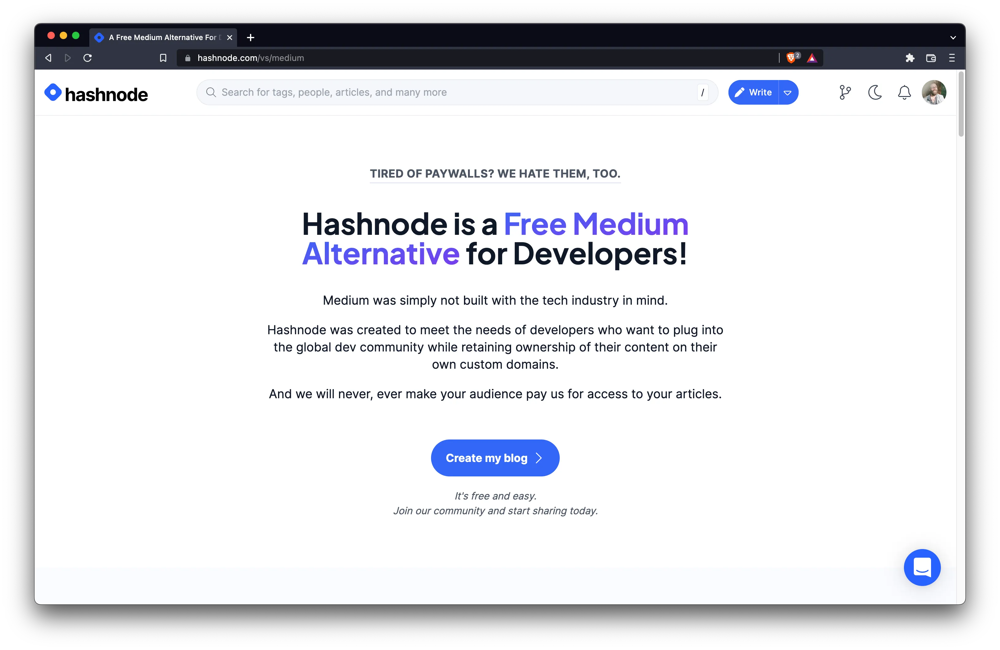 Hashnode is a blogging platform for writers in the tech industry. It was created as an alternative to platforms like Medium that were increasingly restricting the reach of independent creators, and didn’t provide the kinds of features that developers needed to showcase their work.